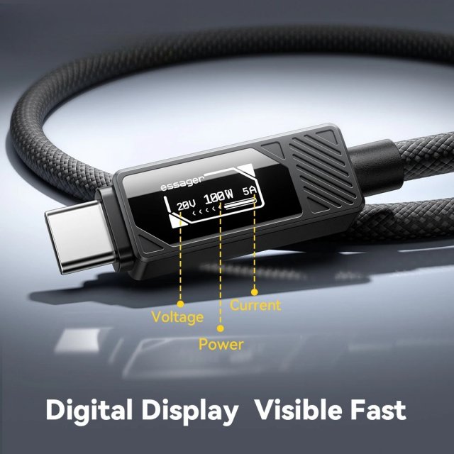 100W USB-C to USB-C Fast Charging Cable with Digital Display