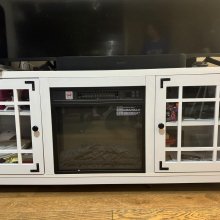 - Dimensions: TV stand measures 58″L x 16″W x 25″H; Fireplace dimensions are 19″W x 5″D x 17.5″H.