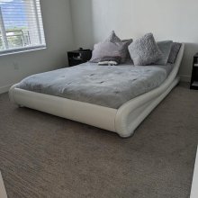 I've been using this bed frame for a few weeks now and I'm truly. The white PU leather finish is not only stylish but also very easy to clean, which is great for someone like me who has kids.