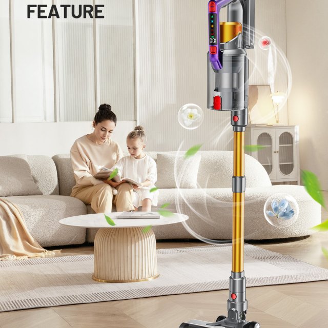 This self-standing vacuum is built for modern living. With a lightweight, bagless design under 6.6 lbs, you can easily maneuver around furniture and stairs. The smart LED display keeps you informed about power levels, brush status, and clogs in real time, so you’re always in control. Its quiet operation under 58 dB ensures you can clean without disturbing your family or pets. The flexible 180° side-swivel and 90° up-and-down swivel brush head allow you to reach under beds, sofas, and tight corners with ease.