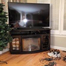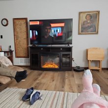 It’s more than just a TV stand; it's a statement piece that enhances any room decor plus provides comforting heat when needed.