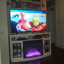 I'm really pleased with this purchase! The curved TV console not only looks stylish but also serves multiple purposes - from holding my television at just the right angle for viewing comfort to providing extra warmth through its built-in electric fireplace.