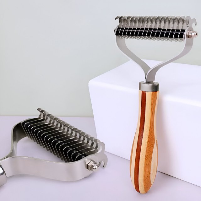 - Dual-Sided Design: One side for detangling and one side for fine hair removal, offering complete grooming versatility.