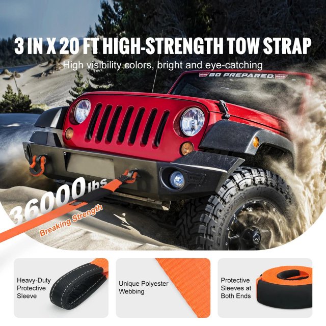 • Heavy-Duty Tow Strap: With an impressive 36,000 lbs breaking strength, the 30 ft long and 3.35″ wide strap handles even the toughest recovery jobs with ease.