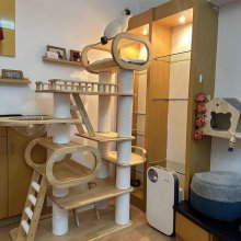 My cats are obsessed with this wooden tower. It's sturdy, safe and has enough space for all of them to play or rest. Highly recommend it for multi-cat households.