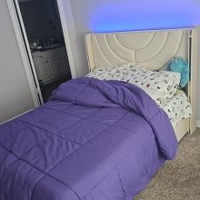 - RGB LED lighting on the headboard, controlled via app or remote.