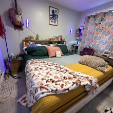 I bought this for my daughter and she loves it! Very easy to put together as long as you have a second person! Directions were very easy to follow as well. My daughter loves the light feature especially after she realized it reacted to her music! She is so excited about his new bed frame. It is well built and sturdy. It also has a decent height off the ground too with enough room to have storage drawers under the bed. We ended up buying a platform bed because the turn we would have to make to get box frames up our stairs is too sharp and narrow to make it.