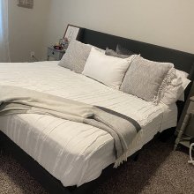 - Robust Construction: Combining a steel frame with wooden slats, this bed offers a firm, stable foundation without the need for a box spring.