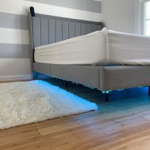 I'm totally smitten with this bed frame. The LED lighting gives off such a cool vibe, it’s like having mood lighting on demand! Plus, those integrated charging ports are an absolute lifesaver.