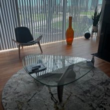 Elevate your home decor with the Mid-Century Glass Triangle Coffee Table, where timeless design meets contemporary flair. Whether you’re enjoying a morning cup of coffee or entertaining guests, this coffee table is the perfect centerpiece for your living space. Embrace sophistication and functionality with every sip and conversation.