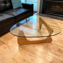 Elevate your living space with our Mid-Century Glass Triangle Coffee Table, a stunning blend of vintage charm and modern sophistication. Crafted with a clear tempered glass top, delicately perched atop a sleek wooden base, this coffee table exudes an air of refined elegance.