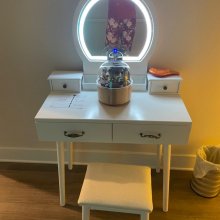 Well, let me tell you about this vanity set that I've got. First off, its modern design is a total showstopper. It's so sleek and stylish that it immediately caught my eye when I saw it online. But hey, don't get fooled thinking it's all about the looks because there’s way more to this beauty than just being pretty. One of the best things about this gem? The functionality! Oh man, talk about having everything in place! This bad boy comes with these spacious drawers - no kidding - they can hold all my cosmetics and then some. No more rummaging through different boxes or bags trying to find that one lipstick or eyeshadow palette; now everything is right at hand where I need them. But wait till you hear about the mirror – not your regular old mirror mind ya – but a 3-color lighted one! It’s like having professional lighting at home which makes getting ready an absolute breeze regardless of whether it's bright day outside or late evening hours.