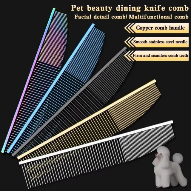 The Pet Beauty Dining Knife Comb is made with high-quality stainless steel, ensuring durability and strength. Its precise design allows for gentle yet thorough detangling, making it a must-have in any pet care routine. Whether your dog has short, long, or thick fur, this comb helps manage their coat, keeping it clean, shiny, and healthy.