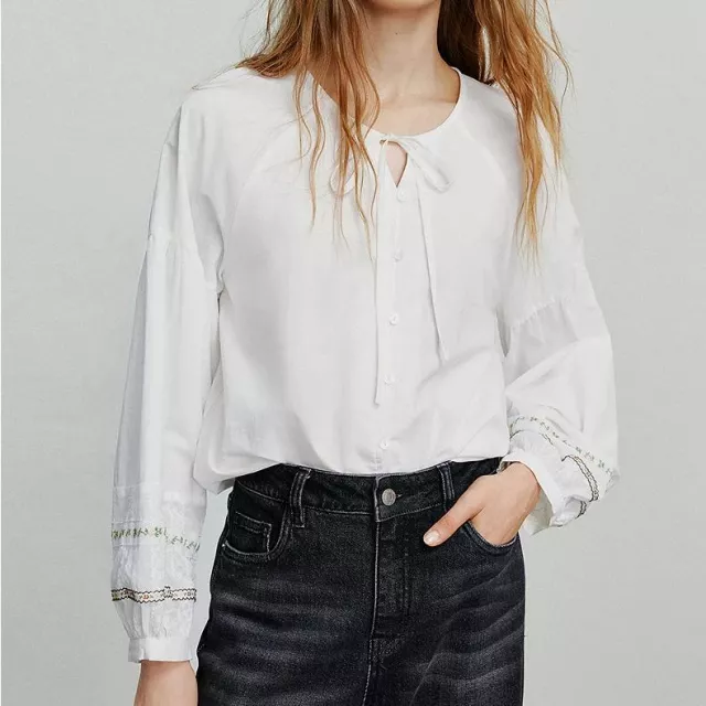 This shirt stands out because it blends classic tailoring with delicate decorative elements. The velvet texture brings warmth and softness, while the bow adds personality without overwhelming your look. It’s the kind of piece you reach for when you need something that feels special but still suits everyday wear.
